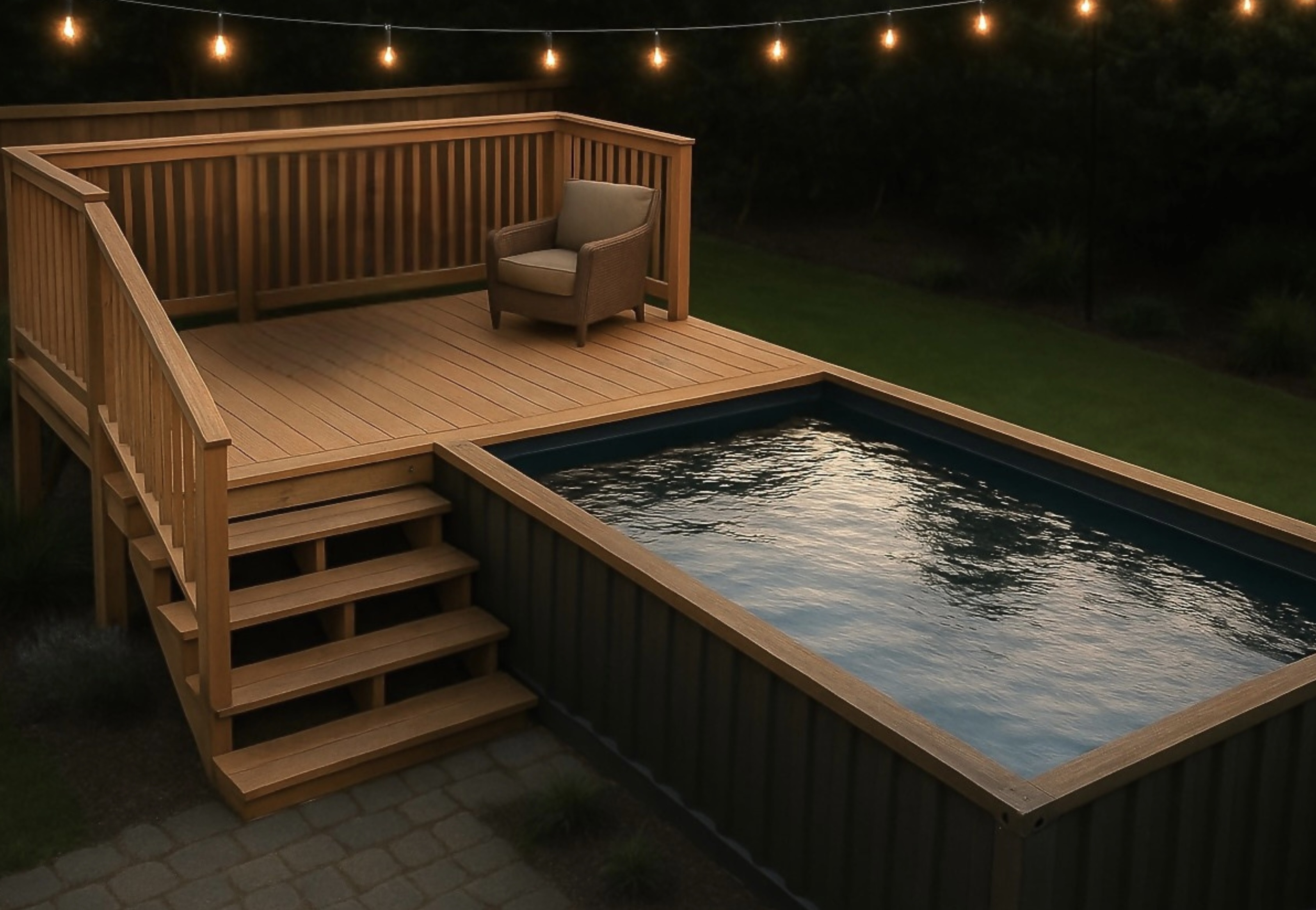 En exteriores desarrollamos pérgolas, decks, cercos, porches, albercas, áreas lounge y terrazas personalizadas. Además, ofrecemos techos con sistemas roofing estilo americano, disponibles tanto en shingles como en lámina, garantizando durabilidad y estética.
