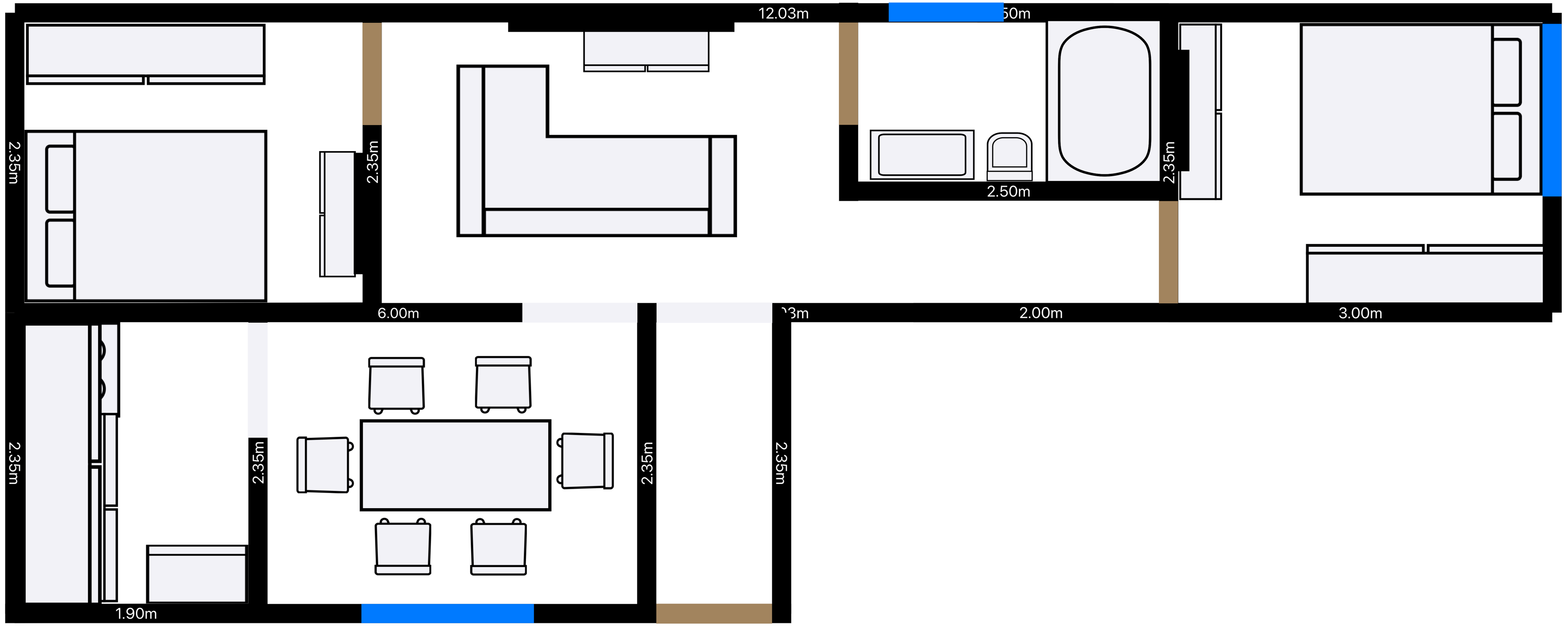 Distribución lineal optimizada 42.3m² que integran 2 recámaras, cocina/comedor, sala y baño completo. Estética contemporánea y funcionalidad diaria.