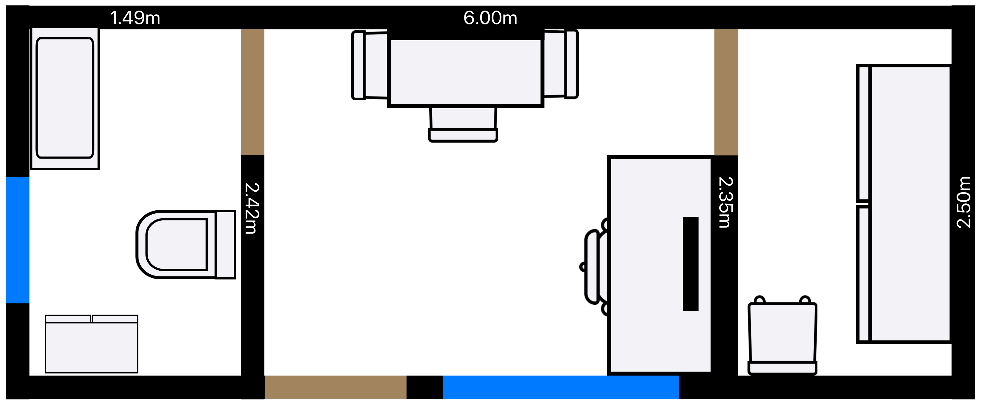 Oficina compacta y funcional con recepción/estación de trabajo,privado y medio baño. Estética corporativa minimalista, ideal para consultorios,despachos y coworking.
